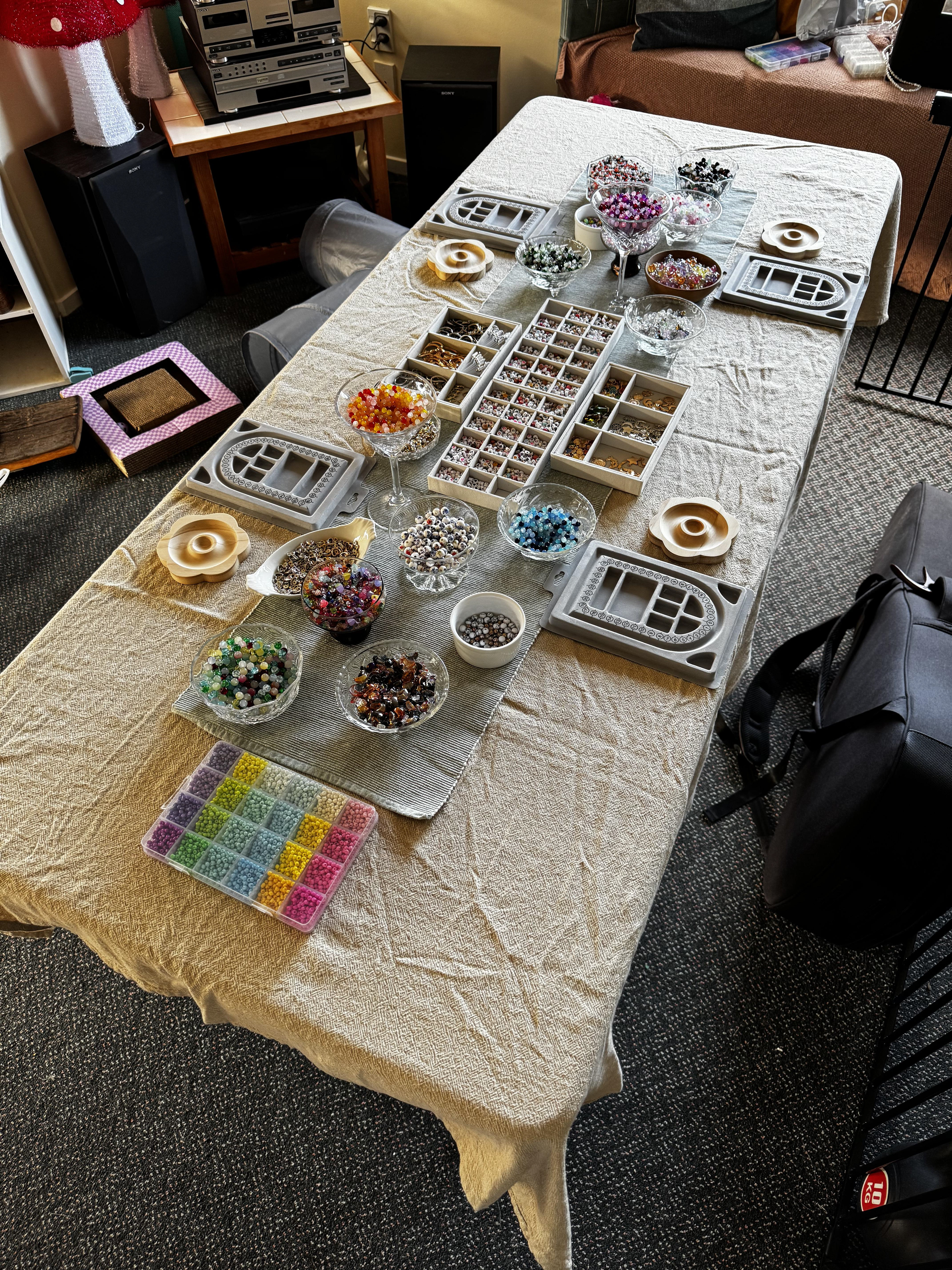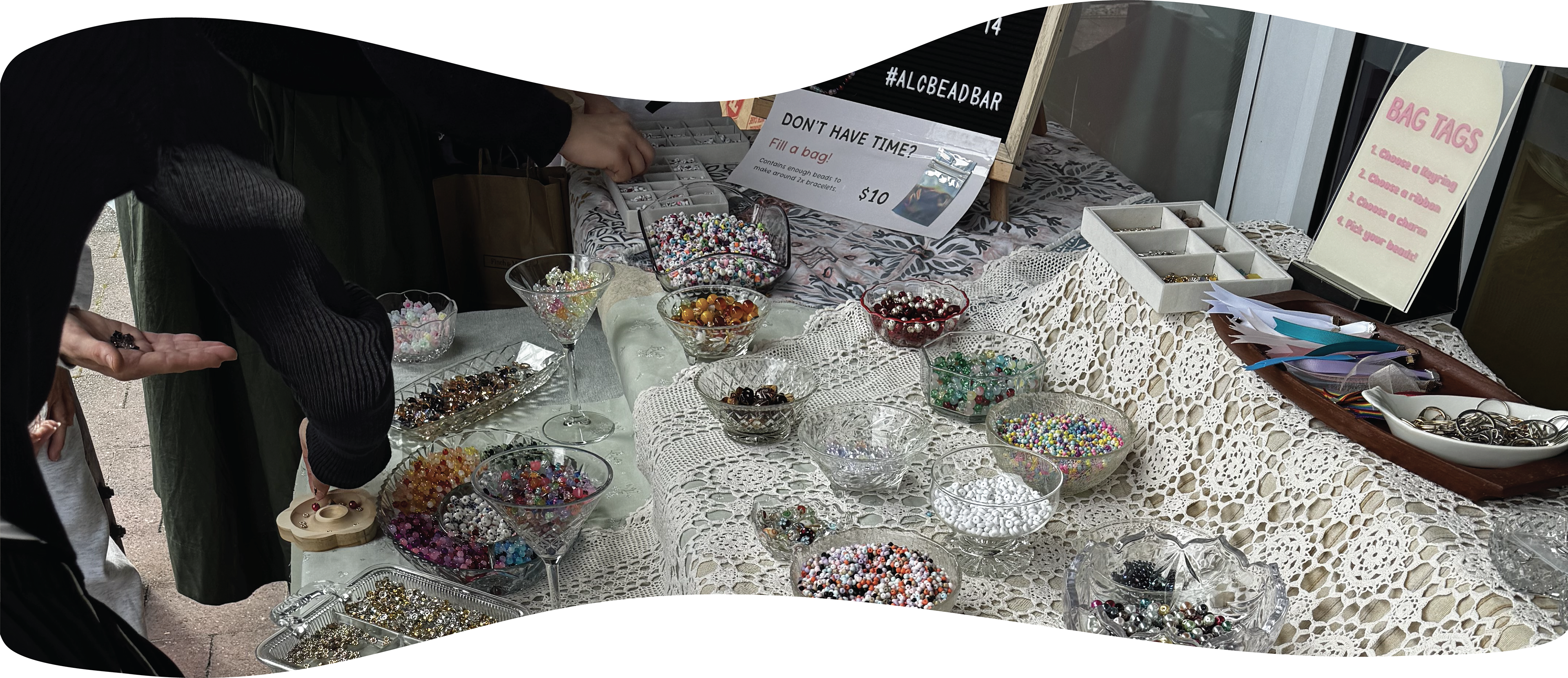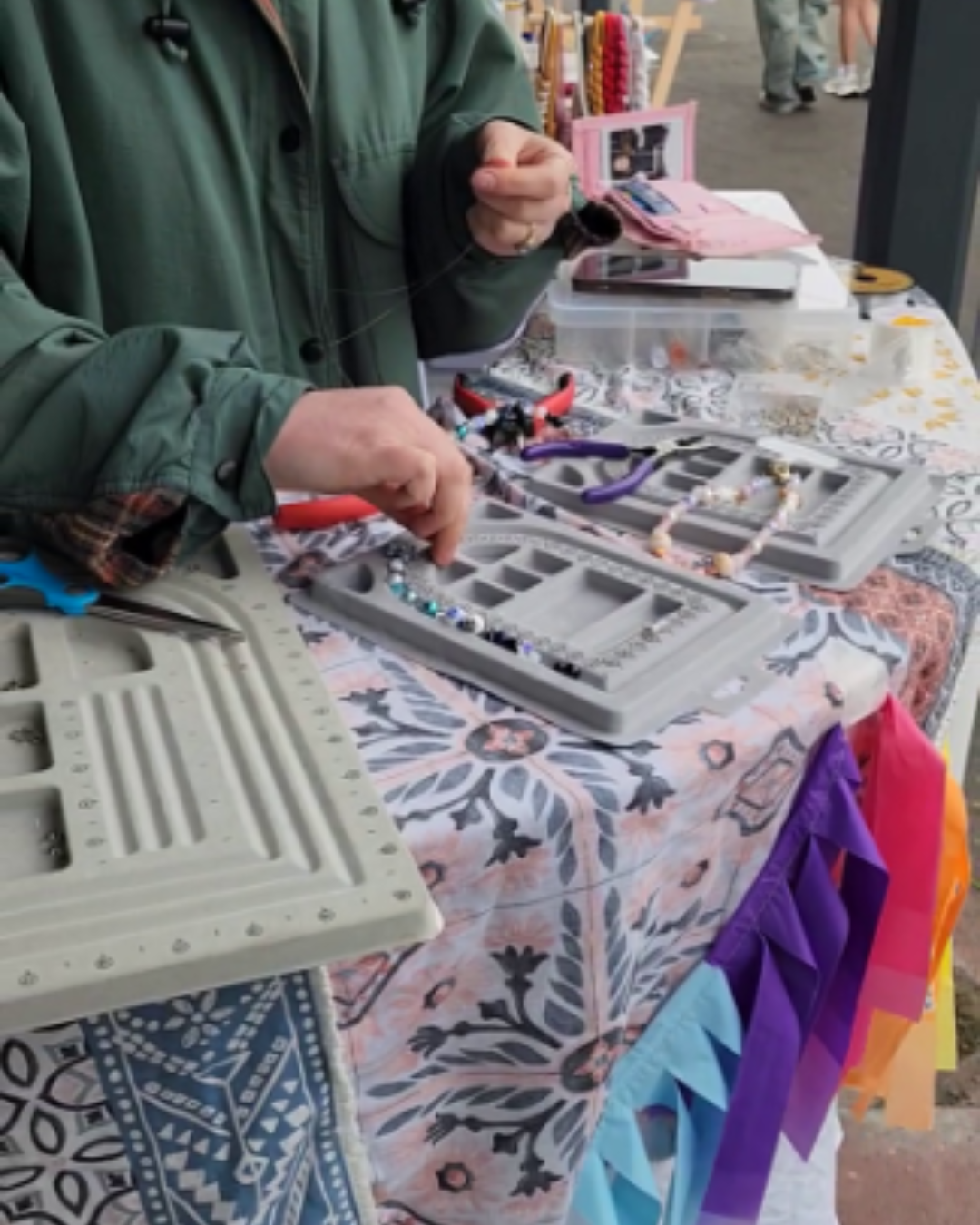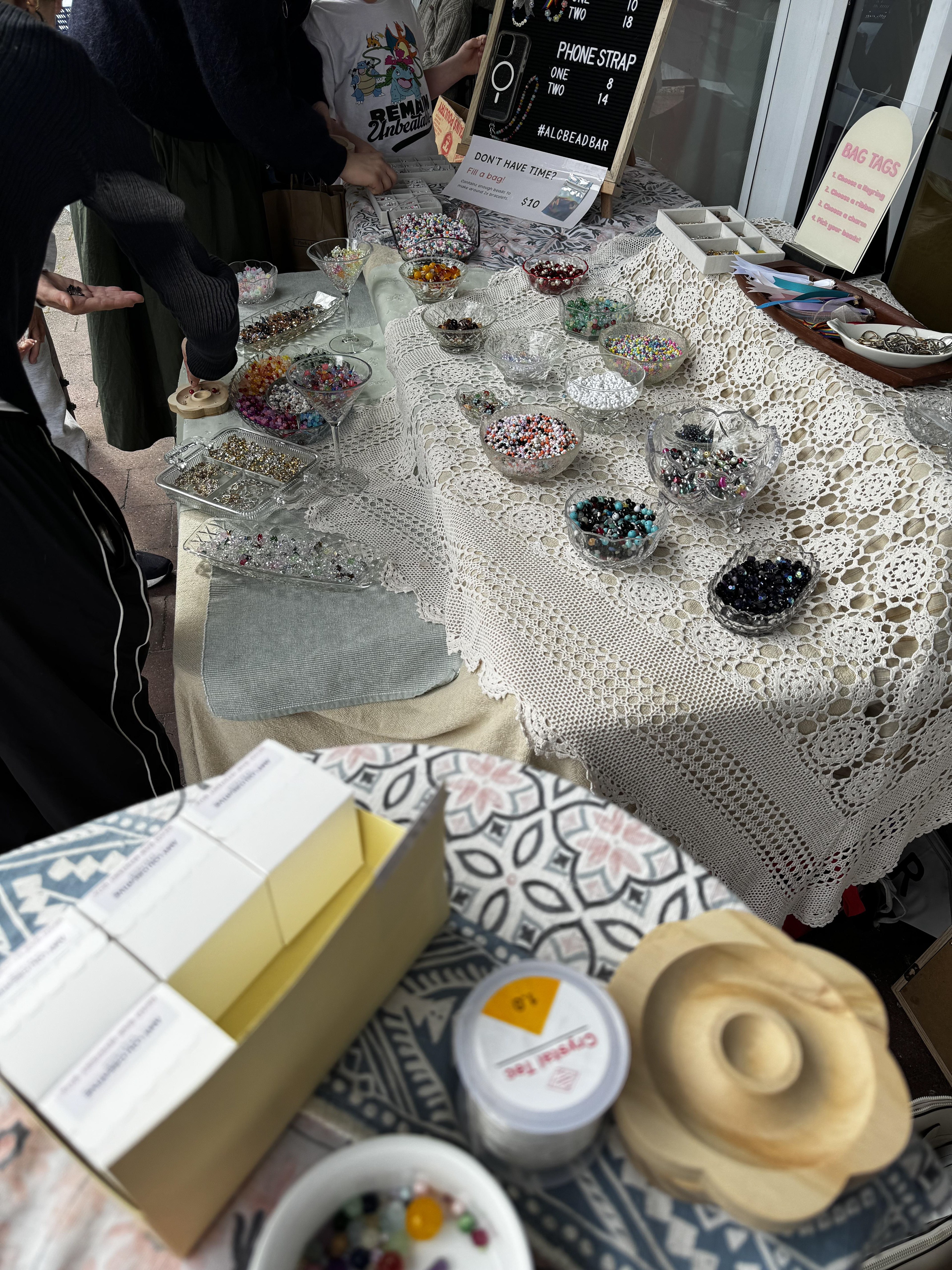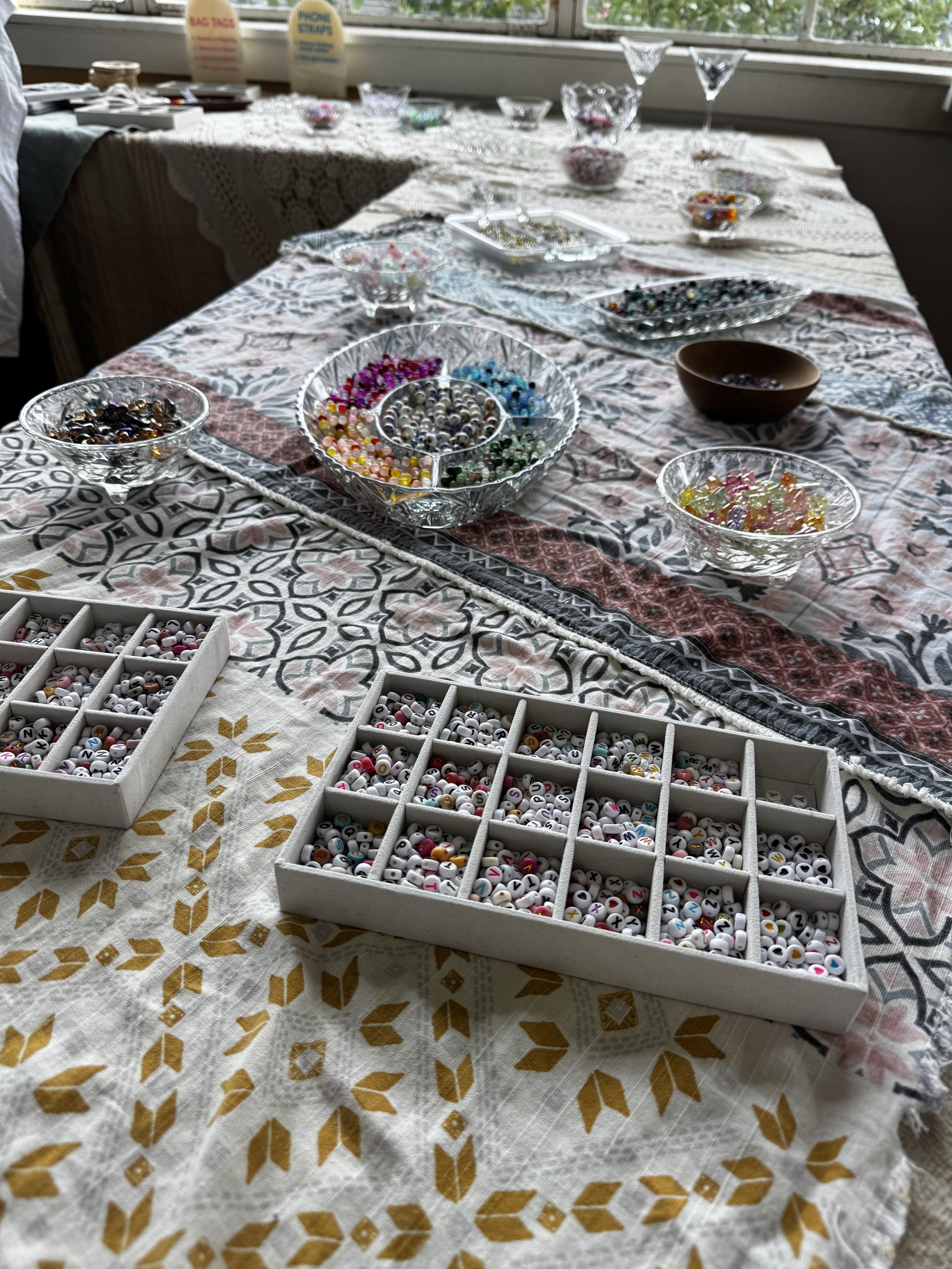 I bring everything you need; beads, charms, findings, tools, and plenty of creative guidance - so crafters can relax and enjoy designing your own pieces. No experience needed, just good vibes and a bit of colour!